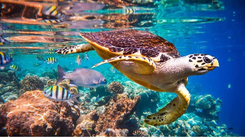 Ne jetez aucun déchet en mer ni à terre. Ne touchez pas les tortues. Ne marchez pas sur les coraux. Respectez notre environnement.